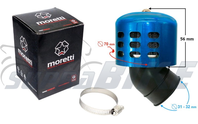 Filtr powietrza 32mm stożkowy z obudową niebieską 45'