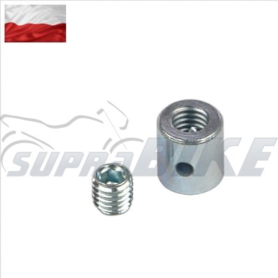 średnica 8mm, długość 9mm, wejście na linkę do 2.2mm, klucz imbus, gwint śruby 5mm